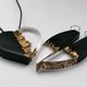 套装“Golden Mountains”由黑色鹅耳枥木和透明珠宝树脂制成,并在银条上镶有金壶。