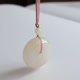 - 天然和田玉平安扣吊坠,冰底藕粉料,玉质细腻油润,平安扣造型圆润,寓意圆圆满满,平平安安,搭配精美手工绳,坠尺寸约24.5×9.4mm