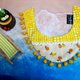 **〈水果多多系列-双面领巾+水果帽(香橙果茶)〉**郁金香造型水果帽缀以不织布双色叶片,可爱度破表;使用调整式同色系松紧带,精致易穿脱。
