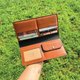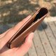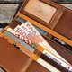 我们所有产品可看见的边缘都会经过处理。先经过基本的修正打磨,再反复地上色及抛光,直到光滑平整后打上一层蜡作保护。单是这个过程几占上整个制作时间的三分之一。颜色方面,我们一般都是选择与主体(封面)皮革颜色最贴近的作为默认。