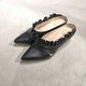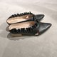 本染皮革制作成手感波浪的荷叶边,从脚内侧延伸绕到外侧,充满知性与甜美的穆勒鞋款。(Mules shoes)。