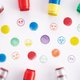 印章及印泥直径为2.7厘米,6种颜色的印泥,6款表情印章,共48件。