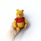 一只小黄熊,高约 4.7 英寸/12 厘米,坐高 5.5 英寸/14 厘米。 针织红色套头衫让他很容易辨认。 维尼是 100% 手工制作,由优质材料制成