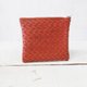 A simple orange leather pouch. The rough texture of goat leather changes with use. The zipper is Silver(YKK Excela, a high-end zipper). The leather is braided, not embossed. Material: goat leather Color: Brick Size: w20 x h17.5 cm
