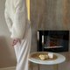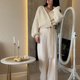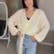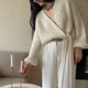 订制款裹身罗纹针织开襟外套。M 尺寸,浅奶油色(如图所示)现货可立即出货。