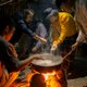 从升火开始,用柴火蒸糯米饭、烤肉,