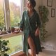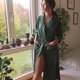 材质:100%棉 弹性:有 透光:无 尺寸:F 平量:肩宽50cm /胸围104cm /袖长34cm /衣长112cm (手工测量 ※偏差值在±2cm以内皆为正常值) 洗涤方式:避免变形,建议手洗或放入洗衣网以低速短程洗涤。请勿使用漂白剂或深浅衣物一起洗涤,以免染色。