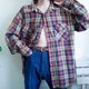 复古80/90年代格子衬衫,带口袋,纽扣衬衫