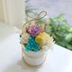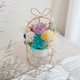 ☑材料:永生花、索拉花、干燥花、精致金框提篮花盆、海绵、黏着剂