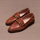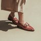 经典Penny Loafers,以复古质感的古铜马衔金属扣饰加于鞍片之上,沉稳的金属色泽蕴含着成熟感,没有任何累赘的装饰。这次产品开发,在鞋后加了可踩跟的设计,可踩可不踩,十分实穿百搭。为女孩们勾勒出自然不做作的风格。