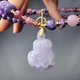 主坠翡翠(紫罗兰)白菜雕工精美,通体色彩匀净、水润冰紫、无斑无矿缺,品相极美,寓意甚佳。