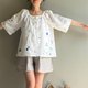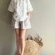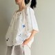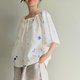 春之颂/设计师印花亚麻圆领抽绳蝴蝶结五分袖上衣100%亚麻