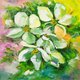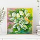 - White Flower Painting, Hand- Painted, Blooming Apple Tree Art, Home decoration Size 30 x 30 cm (12" x 12") Materials: oil, stretched canvas. This is an original, one of a kind, handmade work of art written in the style of impressionism. It i s signed in the backside.