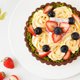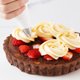 开心果碎、进口空运新鲜蓝莓、台湾/进口新鲜草莓、覆盆子香缇、柠檬卡士达奶油奶酪、覆盆子果酱、巧克力甘纳许、杏仁奶油馅、巧克力塔皮