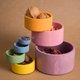 这套色彩绚丽的七个堆叠碗将为从一岁生日到上学的孩子们带来无限乐趣。幼儿喜欢将这些木杯堆叠起来,将它们插入彼此中并寻找藏在它们下面的玩具。年龄较大的孩子会非常开心地将它们组合成积木,并在玩具厨房中使用它们来制作色彩缤纷的锅子、碗和杯子。