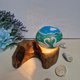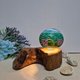 3. 材料: 椰壳, LED灯, 木头, 石头
