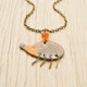 - Enamel necklace made by hand. The form of the pendant is cut by hand with shear. The graphics is painted with vitreous enamel and used sgraffito technics (scratch work). Both side of the shape is enamelled, the back side is covered with black. Absolutely handmade unit.