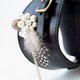 Two stitched high-quality black leather full of luxury stitched, decorated with cotton pearl etc. ☆ Mi