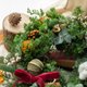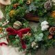 以新鲜诺贝松、雪松、丝柏等叶材制成,并加上橙片、松果、棉花等果实,点缀些可爱的装饰球,最后系上一条酒红色绒布缎带的蝴蝶结,完成了这个经典的圣诞花圈。