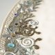HAND PAINTED Ceramic plate, main color cream, vintage look, beach theme design, decorated with Swarovski crystals, pearl beads. Hand-painted starfishes, leaves, swirls, shells.Reflex effect.
