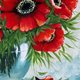 Scarlet flowers in a transparent vase. How beautiful these tender and proud flowers are. I keep drawing them. Such a huge number of types of poppies does not allow me to stop to stop writing them in my paintings.