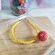 玫红色系上加入紫红及黄色线条之设计款式,再配上黄色棉质线材编织手绳。