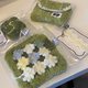 夏天的软杯垫,草地上的花痴和幸运三叶草叶子。 尺寸约 10x10 厘米