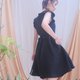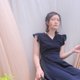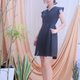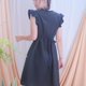 Ruffle袖束腰连身裙〈蓝拼黑〉