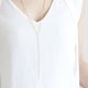 As a long necklace with a V-shaped line through the charm