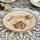 来自于19世纪末至20世纪初的法国陶瓷盘,以自然主题装饰,细腻的棕色转印图案有小鸟和木屋,边缘更以几何纹饰点缀,典雅而富有艺术感,以法国Terre de Fer 铁土为原料,出自着名的Cie Franco-Anglaise,背面标有“Rue Turbigo 18 Paris”及“Terre de Fer”,将法式优雅与自然主义完美结合的古董陶瓷盘,极具收藏与装饰价值。