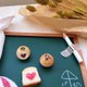 磁性小黑板*1,相思红豆面包磁铁*1,心型红豆馅面包磁铁*1,心型草莓果酱吐司磁铁*1,小蜡笔*1。此组合不含照片中的纸条及黑板支架,黑板已有锁挂环可供吊挂,心型系列有使用少部分黏土材料。