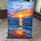 日落海景-手绘原创绘画。风景原创艺术。色彩缤纷的原创艺术品。海景画-画在绷紧的帆布上。画作正面的侧面有艺术家的签名。