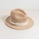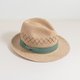 **中编爵士帽的编织纹路非常细致,编制前,工艺师们要用缝衣针将蔺草一根根剖至适当的粗细。其细致的纹路展现了蔺编的质朴与典雅。**