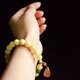 选择天然白花蜜作为手链主材,无任何优化无杂无裂,搭配碧玉雕刻南瓜珠,搭配南红玛瑙冰飘雕刻小莲蓬作为小吊坠,手工绕线连接。
