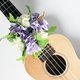 This is the headstock accessories for ukulele. made with fine ribbon. The flower name is purple hibiscus.