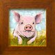 - 温暖又幽默的小猪油画,画在画布上并配有木框,由艺术家 Feliks Kiselev 手工绘制。画作尺寸 21x21 厘米,已装框,到手即可展示。