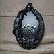 这款壁镜在精心制作的木框内描绘了令人惊叹的北欧女神赫尔和凶猛的狼。女神赫尔被描绘成半生半死的样子,她的脸的一侧散发着生命和美丽,而另一侧却是骷髅和令人难以忘怀的。狼的眼神锐利,表情咆哮,代表力量和凶猛。木框上雕刻着精致的挪威符号和图案,增添了镜子的整体神秘感和吸引力。这款独特而迷人的作品将为任何空间增添引人注目的元素,为装饰增添古代神话和象征意义的元素。