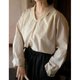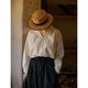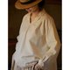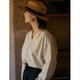 这是一件有中古气息的白衬衫,泛着另一种古董的洁净感,如陈列在中古空间里的珍珠耳环,晶莹当中又携带着拙,也如中古的白磁盘,剔透当中夹着泛暖的光泽感。