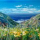 A sunny landscape on the shores of La Jolla, an ocean and a field full of yellow flowers, surrounded by a clear blue sky. Bright and colorful painting in the impasto technique. This painting is inspired by the hot sun of the Pacific coastline. A small brilliant and everlasting summer scenery brings warmth and comfort to your home or it can be a great gift. I’m sure the painting will look even nicer when it finds its owner. This painting has a history of creation, but like any work of art, it has a place for your history, for your feelings. This is the most important ingredient that any one of you can add. My art will get more special and unique just with you!