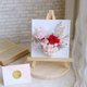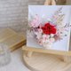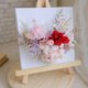 ・画布尺寸约15x15厘米,框架约23厘米。含2朵永生康乃馨(可更换为玫瑰)、其他皆为其他永生、或干燥花材。