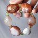 **1.图上玛瑙滚石长约24-30mm、宽约12-26mm,绿碧玺珠约6.3mm,粉碧玺花高约19mm,整体手围约16cm。**
