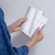 以创新的直立式设计来收纳,在两片胶膜之间套入口罩,折叠时就不会折弯固定用的鼻梁线。方便用来存放临时脱下的口罩,以防止脏污扩散。 而内侧胶膜是烯烃材质,经过抗菌处理,一抹就干净。