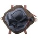 墨绿色配啡色帆布袋,外袋设磁钮及后也有一个拉链袋,真皮手挽,并加有外置侧肩带,带可删除。
