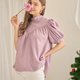 A short sleeves blouse with high neck design. It made from premium Japanese tencel fabric which is comfortable and light. It looks dolly and cute. Perfectly matches with slacks or denim. **Model size (172 cm.)** Chest : 32" Waist : 23" Hip : 36" **Free Size** Shoulder : 14.5" Chest : 42" Length : 24" **CARE LABEL** - Machine wash with normal temperature - Hand wash - Medium heat iron