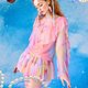 40D网纱面料,亲肤舒适。原创设计印花,小众不撞款。网纱罩衫,夏日防晒必备。荷叶边袖子设计,少女感满满