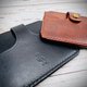 本款卡包的颜色选择有素面黑色与素面茶色,两种色调皆展现出简约而不失高雅的风格,适合各种场合与服装搭配。边缘的压线处理则为整体设计增添了一丝精致的细节,彰显了工艺的精湛。同时,手染的工艺使每一个卡包都独一无二,带来独特的个性与魅力。