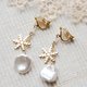 A swaying earring that combines delicate snow charm and ornate poppy pearl.