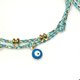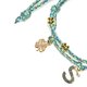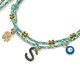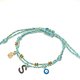 There are a clover leaf charm to bring lots of lucks and a handmade glass evil eye for protection with 1 alphabet charm of your choice.