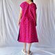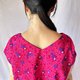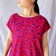 ● 身片:粉红色底,印有紫色浆果图案,100% 纯棉巴厘纱。