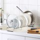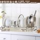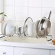 M型碗盘架可调整间距,除了可将盘子叠在一起摆放,厚盘、锅子也可轻松收纳!